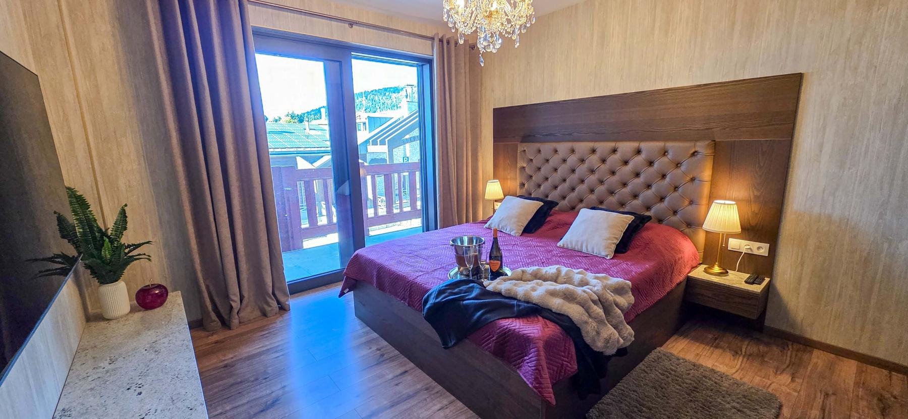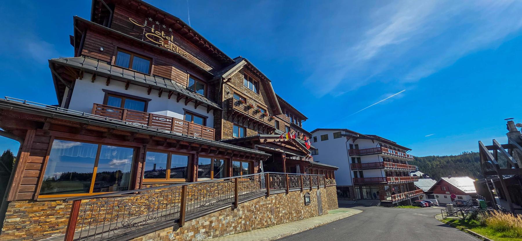 je 2 izbový apartmán, ktorý sa nachádza v Hoteli Galileo na druhom poschodí, má 80m2 je vhodný pre 2 osoby, má jednu samostatnú spáľňu, veľkú terasu a výhľad na Záhradište a čiastočne aj na Novú Hoľu.