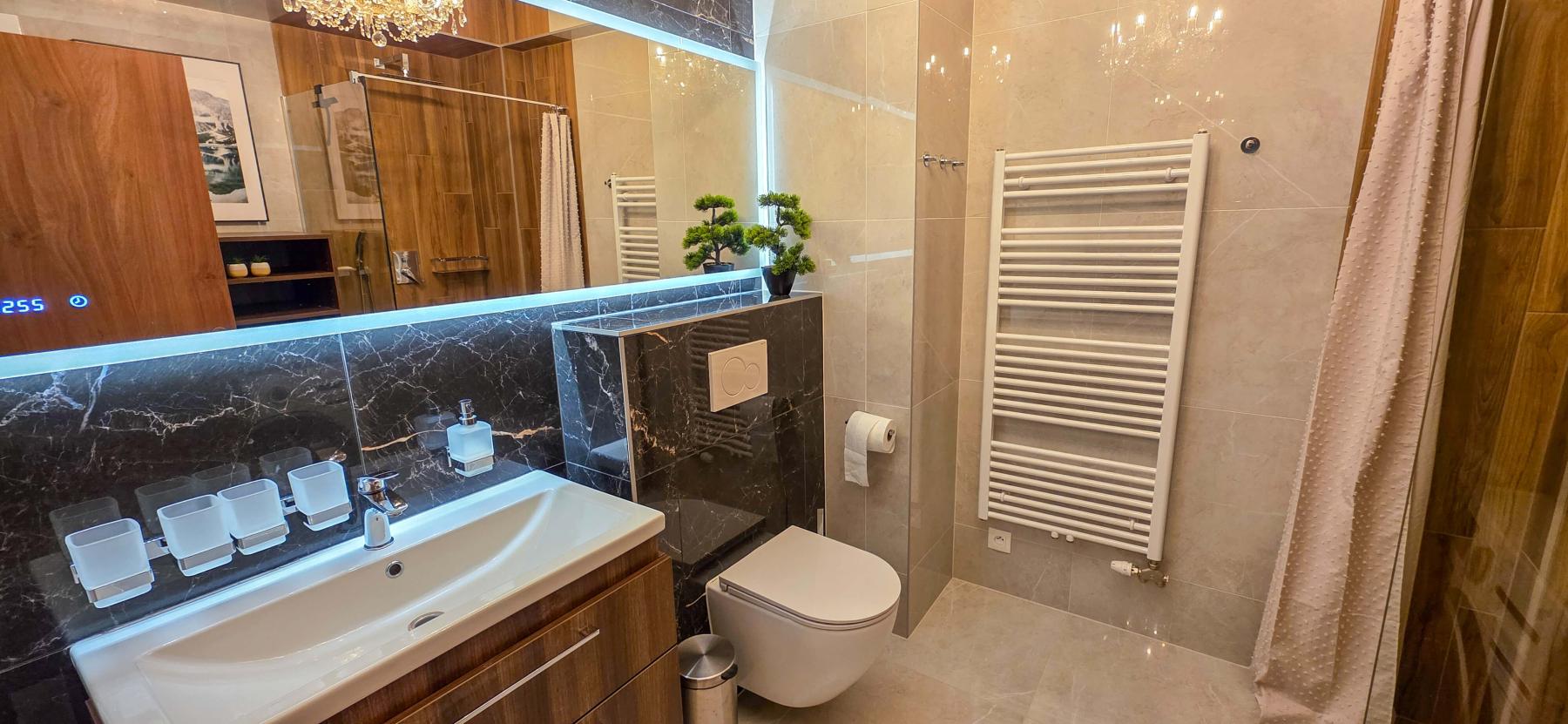 V apartmáne je 3x Smart TV s bohatou ponukou programov + Netflix, podlahové kúrenie je v celom apartmáne a radiátor v kúpelni .